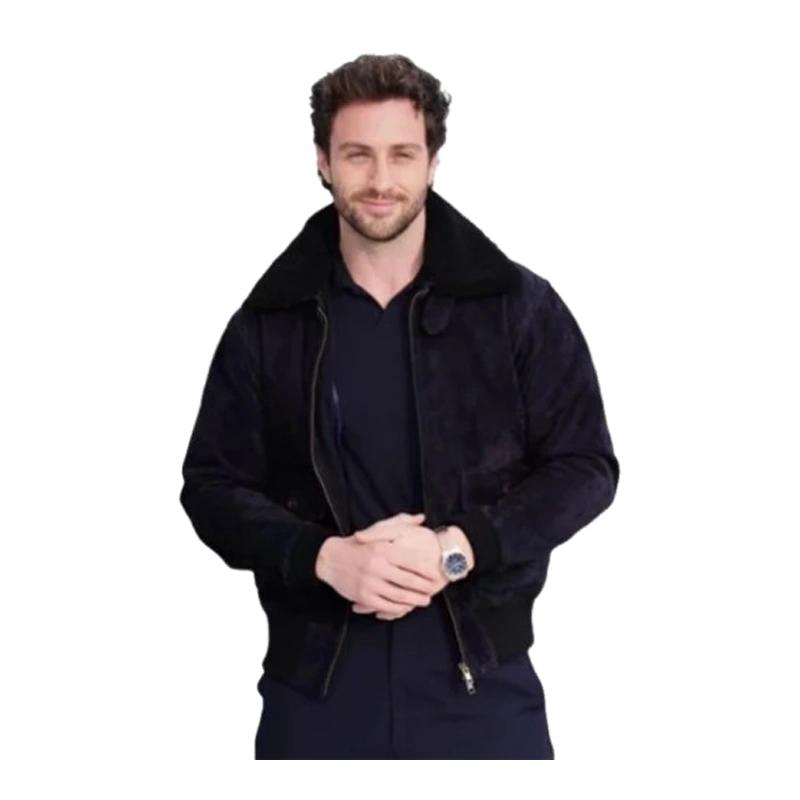 Aaron Taylor Johnson Suede Aviator Bomber Jacket