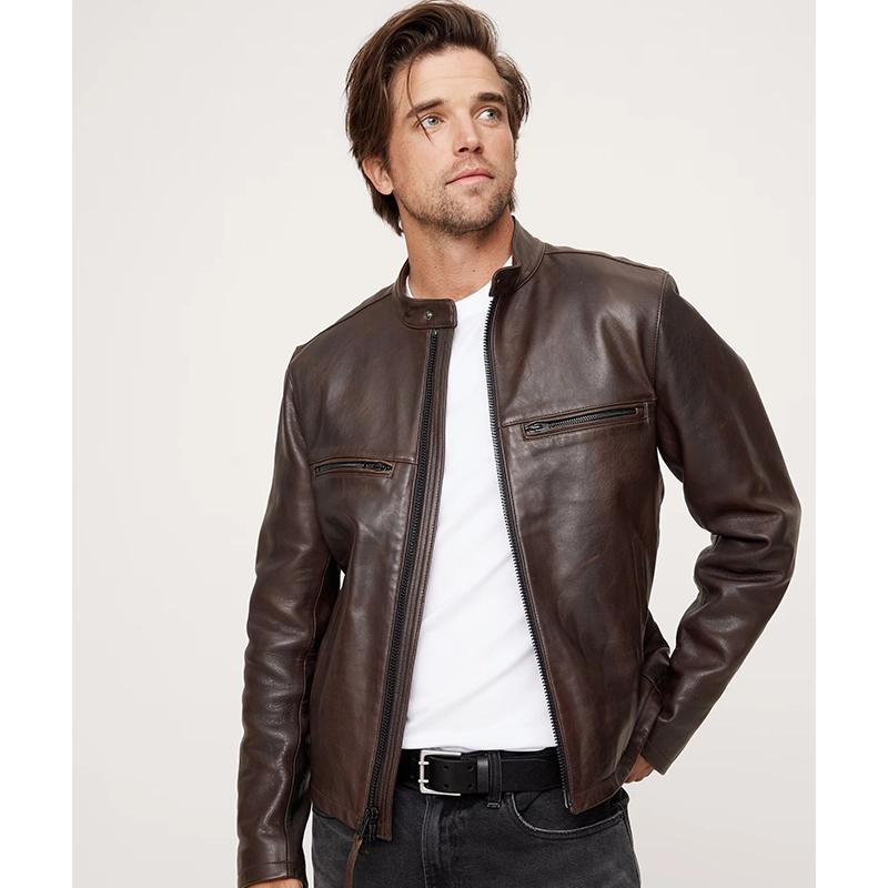 A timeless take on the iconic moto jacket—crafted from premium leather that only improves with age, developing a rich, unique patina. Traditional moto details meet thoughtful updates for all-season wear, including a banded collar and underarm grommets for ventilation.