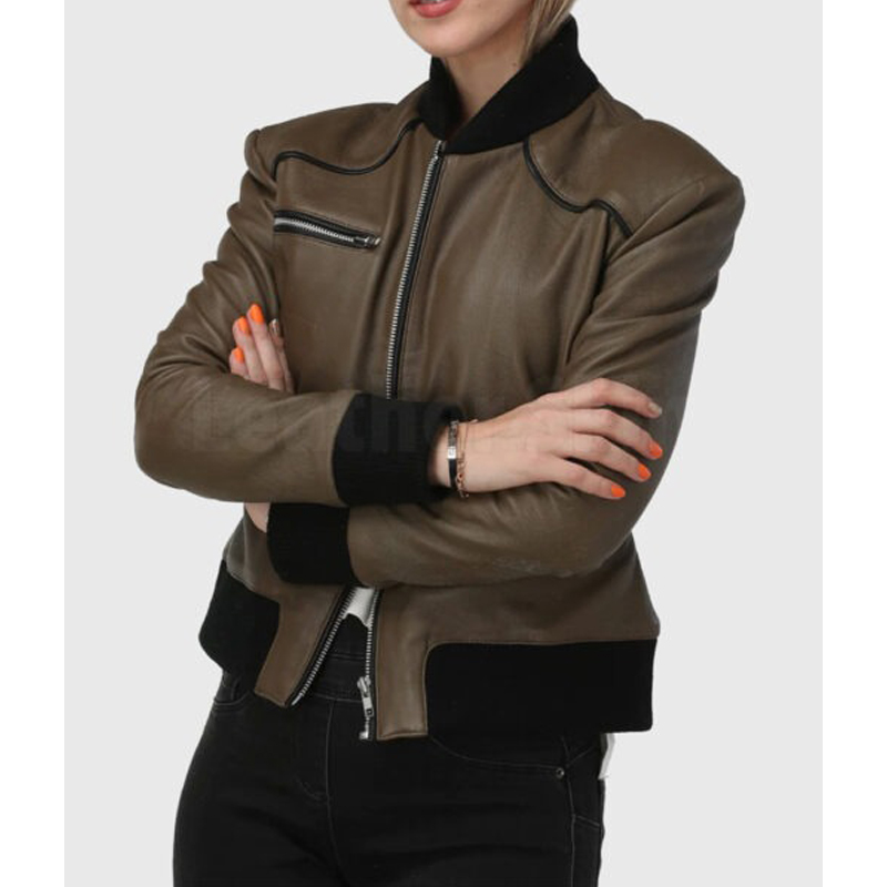 Betty Women’s Classic Brown Cowhide Leather Bomber Jacket