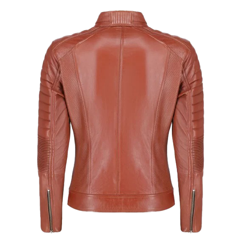 Emma Women’s Brown Real Leather Biker Jacket – Quilted Moto Style