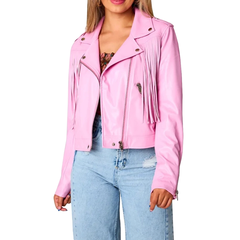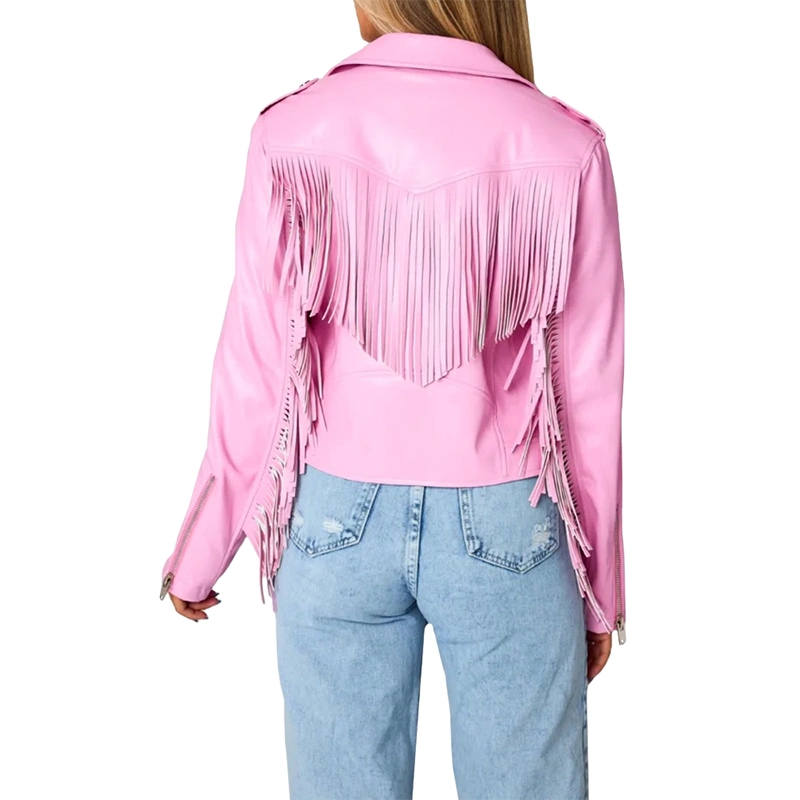 The Genuine Leather Pink Fringe Jacket is bold, playful, and unapologetically stylish. Made from premium leather, it features dramatic fringe detailing, a tailored fit, and eye-catching pink color. A statement piece that brings Western flair to streetwear or festival looks.