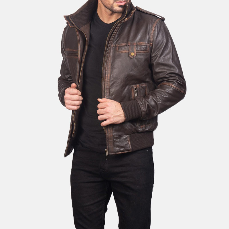 Glen Street Brown Cowhide Leather Bomber Jacket