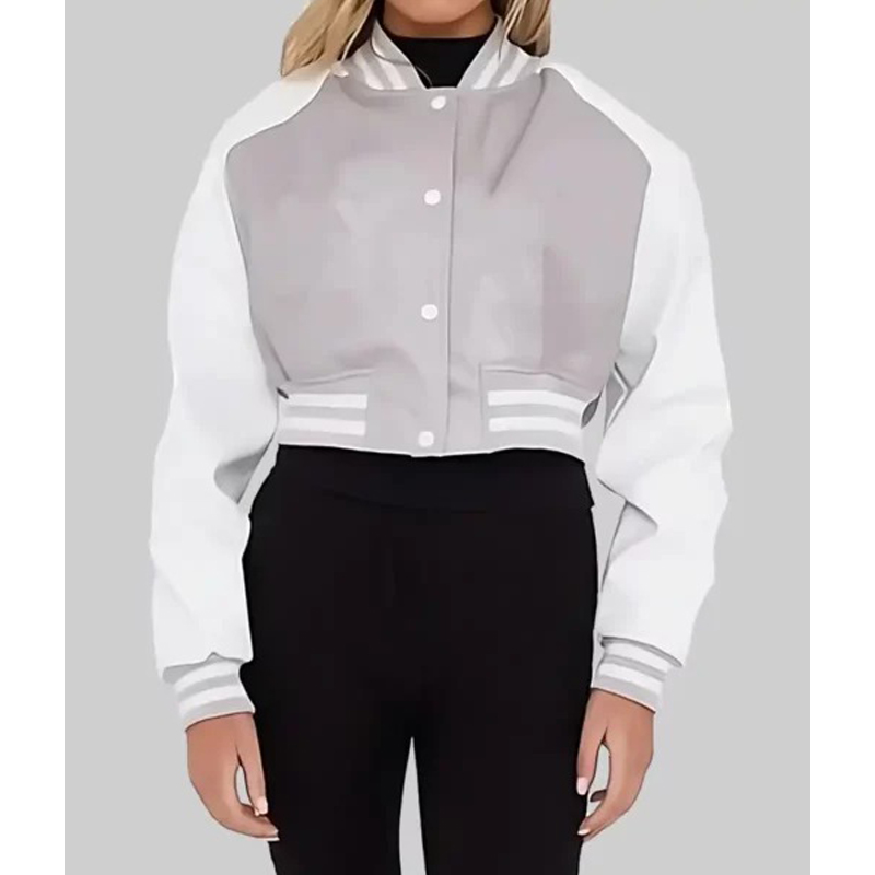 Whether you’re layering it over casual wear or styling it up for a sporty-chic vibe, the Mary Varsity Jacket makes a bold statement in versatile grey and white.
