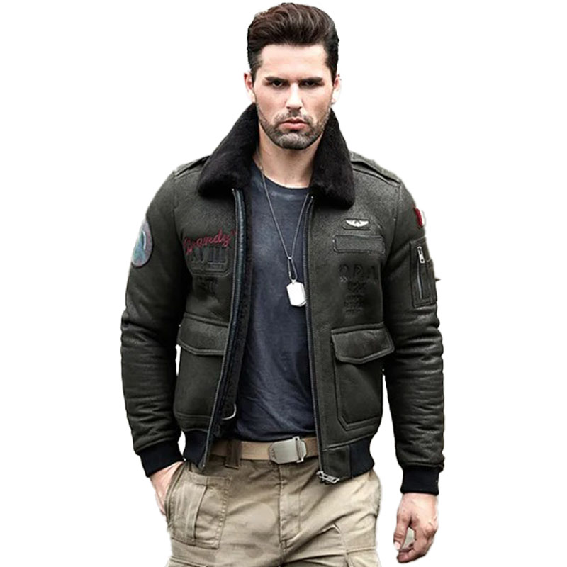 Men’s RAF Aviator Shearling Sheepskin Leather Bomber Jacket