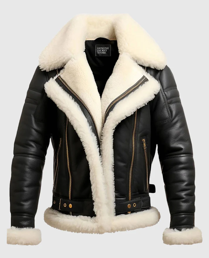 Elevate your wardrobe with the timeless appeal of the Men’s Aviator B3 Bomber Jacket, expertly crafted from premium genuine sheepskin leather. This jacket features a plush faux shearling lining that provides exceptional warmth and comfort, perfect for cooler days and nights. The standout notch lapel shearling collar adds a touch of rugged sophistication, while the sleek black finish ensures versatile styling options.