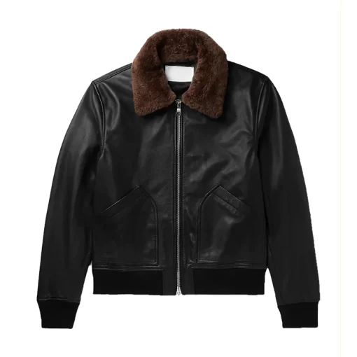 Men’s Black Bomber Shearling Leather Jacket
