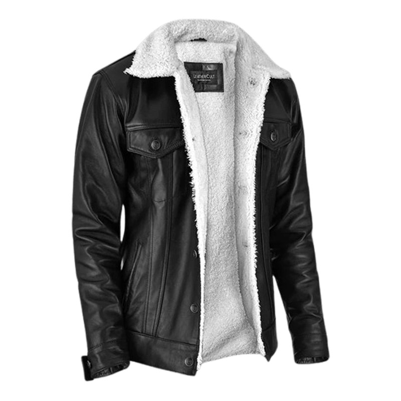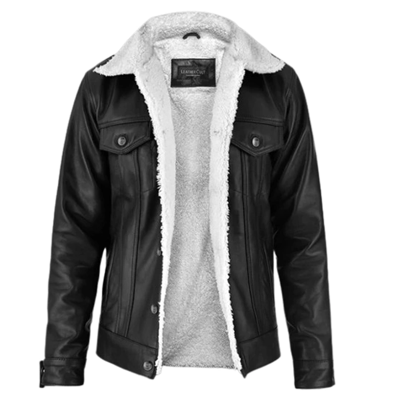 Men’s Black Napa Leather Sherpa-Lined Jacket