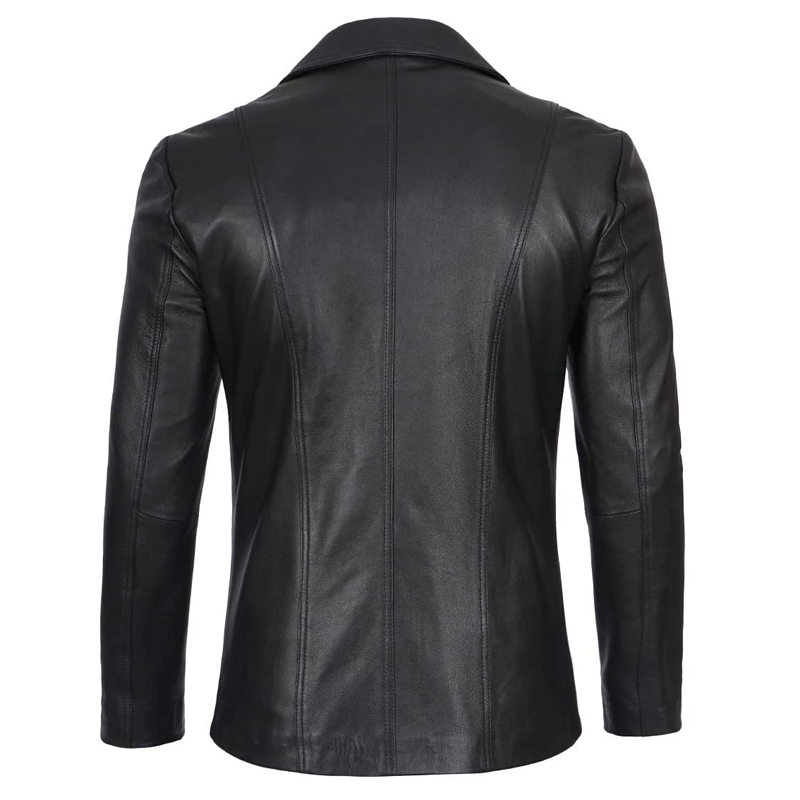 Elevate your wardrobe with this Men’s Black Two-Button Lambskin Leather Blazer, expertly crafted from premium genuine lambskin leather. Featuring a soft polyester lining for all-day comfort, this blazer blends classic style with modern sophistication. The two-button closure and notch lapel collar provide a timeless silhouette, while multiple pockets add practicality without compromising sleekness. Whether you’re dressing up for a formal event or adding a refined touch to casual attire, this versatile black blazer is designed to impress and endure.