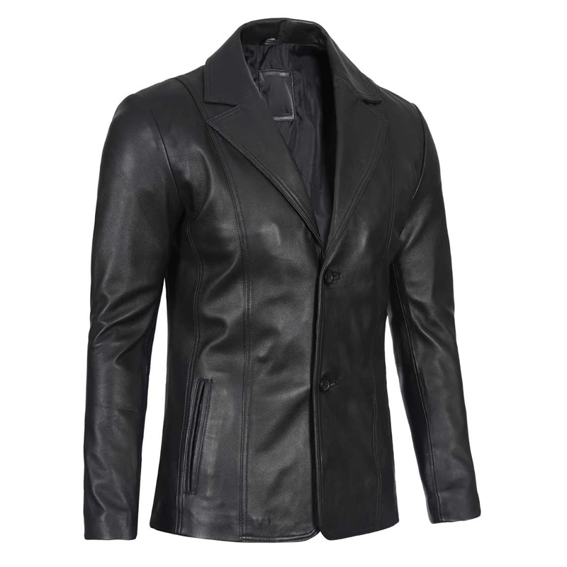 Men’s Black Two Button Lambskin Leather Blazer