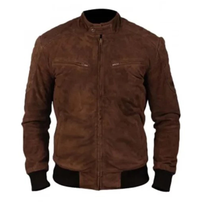 Men’s Dark Brown Suede Bomber Jacket – Real Goatskin Leather