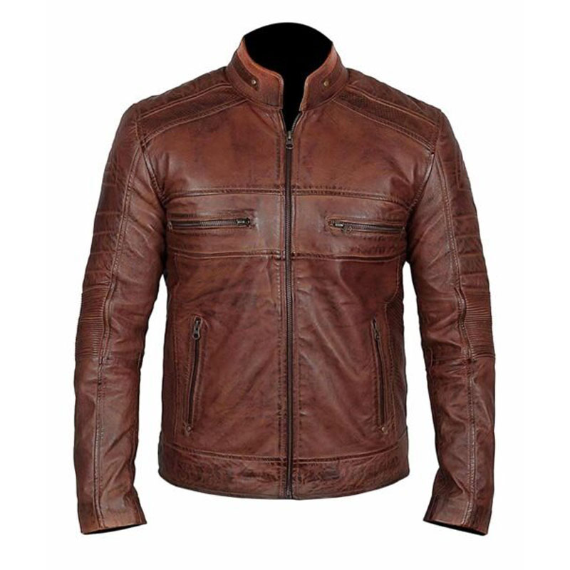 Men’s Distressed Brown Vintage Biker Jacket – Ride in Rugged Style