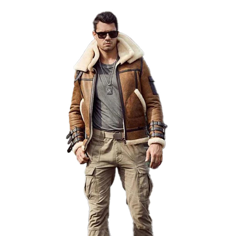 Men’s B3 RAF Aviator Shearling Leather Flight Jacket – Brown Double Collar Bomber Coat