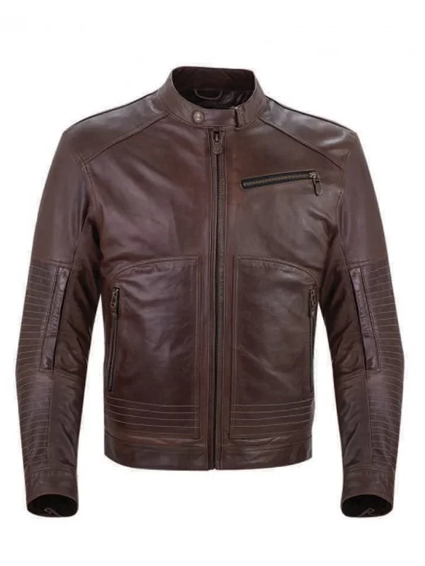 Featuring a sleek front zipper closure and a distinct erect collar, this jacket brings the iconic biker aesthetic to life. Whether you’re on the road or heading out for the night, this brown leather jacket delivers both function and fashion with confidence.