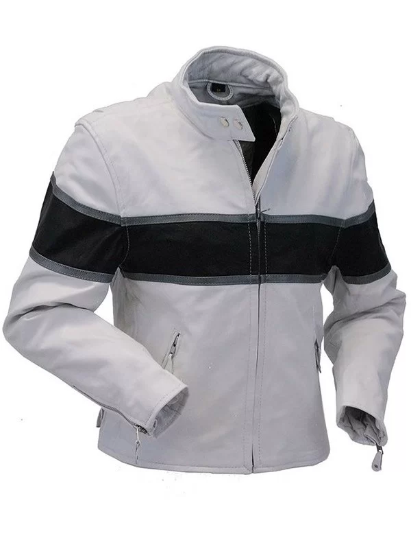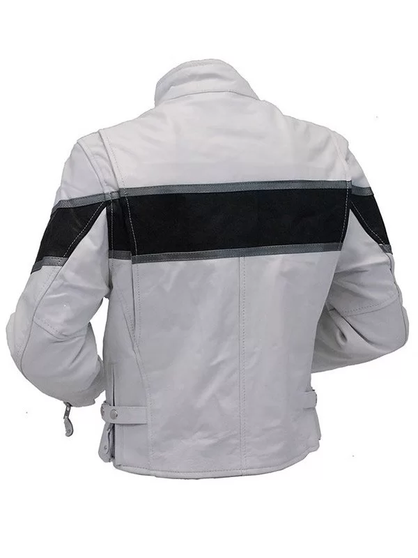 Men’s Vintage White Scooter Leather Jacket – Classic Fit with Black Stripes