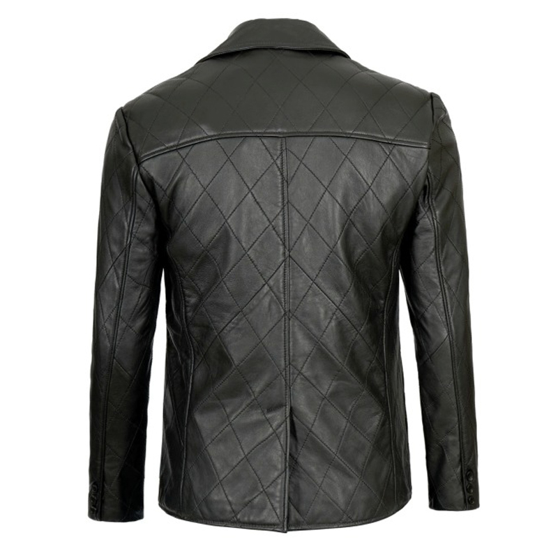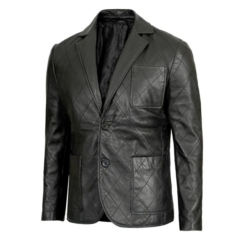 Men’s Black Quilted Sheepskin Leather Blazer – Diamond Stitch Design