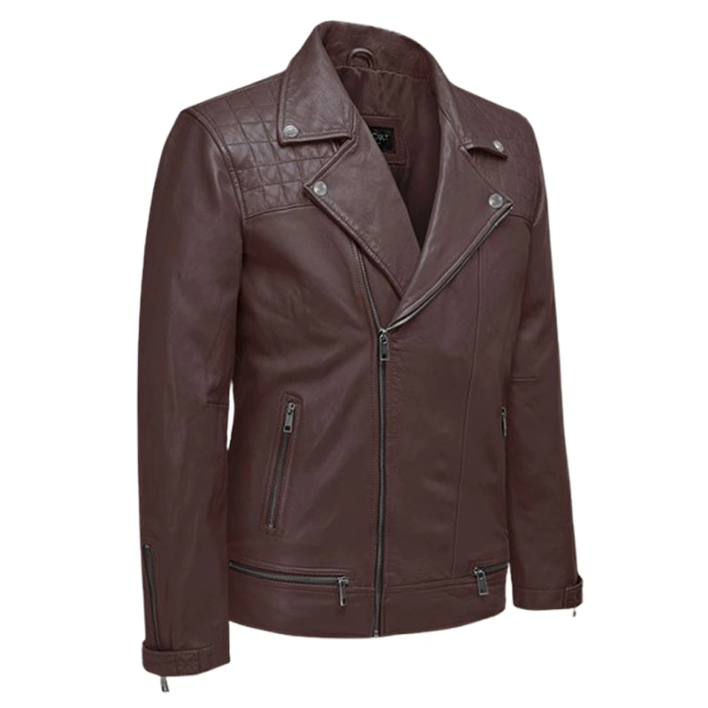 The rich tan hue offers a fresh twist on the classic black, making it a versatile addition to your wardrobe. Quilted shoulder panels add a rugged edge, while the slim-fit design ensures a sleek, tailored look. Whether you’re on the road or in the city, the multiple zipper pockets keep your essentials close and secure.