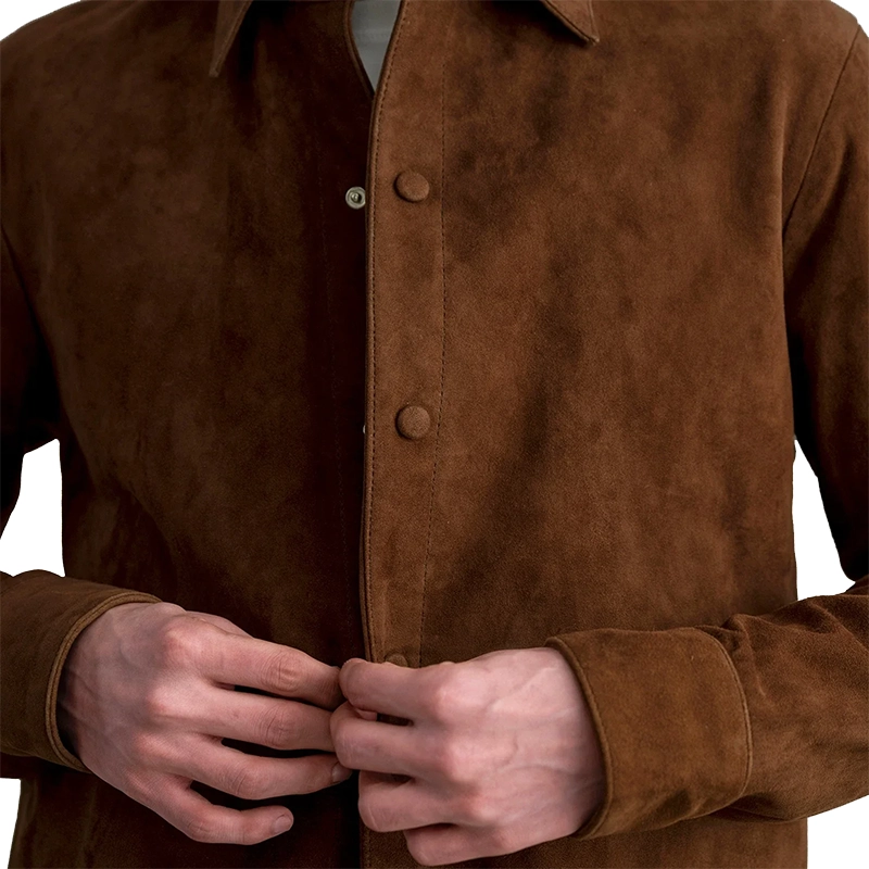 The Men’s Haven Brown Suede Leather Shirt blends rugged charm with refined style crafted from premium suede leather for a soft, luxurious feel.Tailored fit enhances your silhouette without sacrificing comfort perfect for layering or wearing solo in both smart and casual settings.
