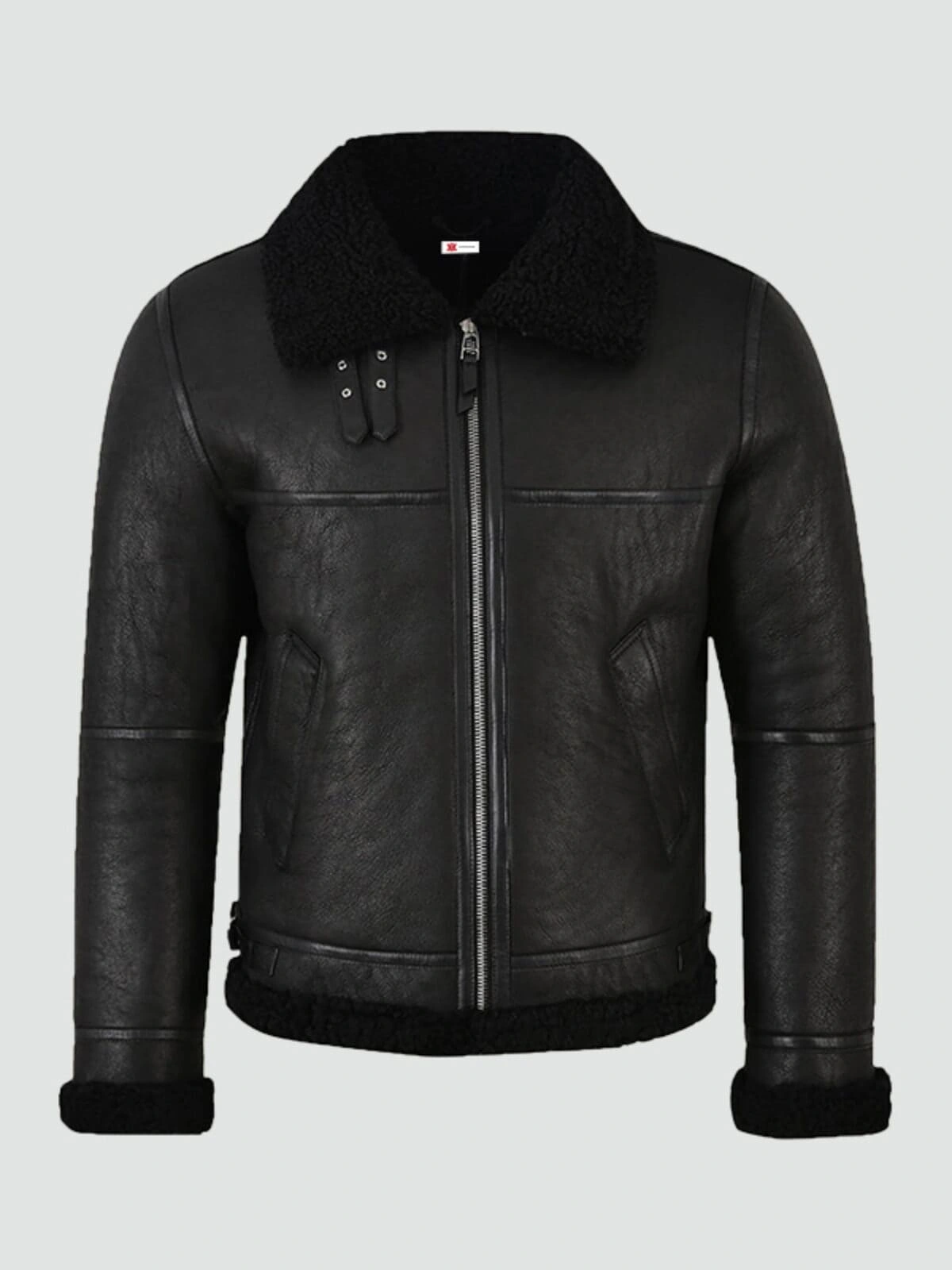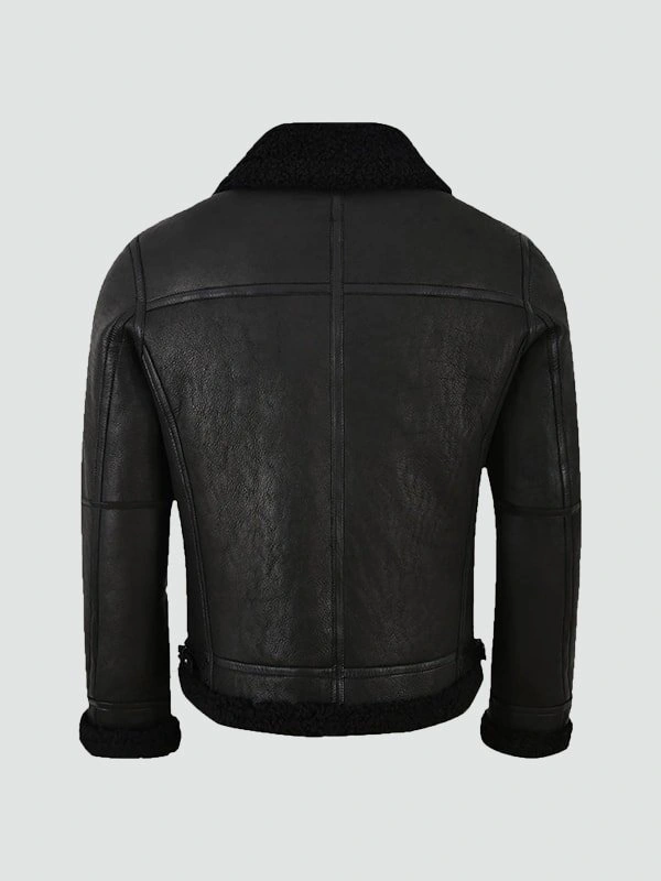 Men’s Jet Black Shearling-Lined Leather Jacket