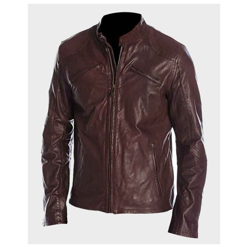 Men’s Four-Pocket Maroon Cafe Racer Biker Jacket – Classic Slim Fit Style