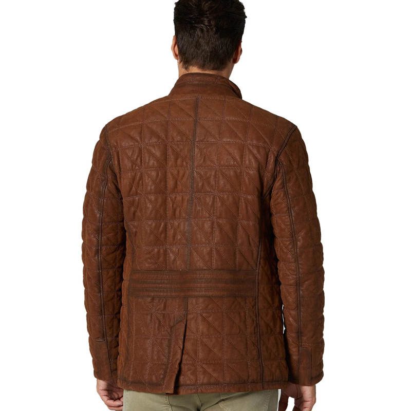 Men’s Quilted Brown Sheepskin Leather Jacket – Lukaku Style