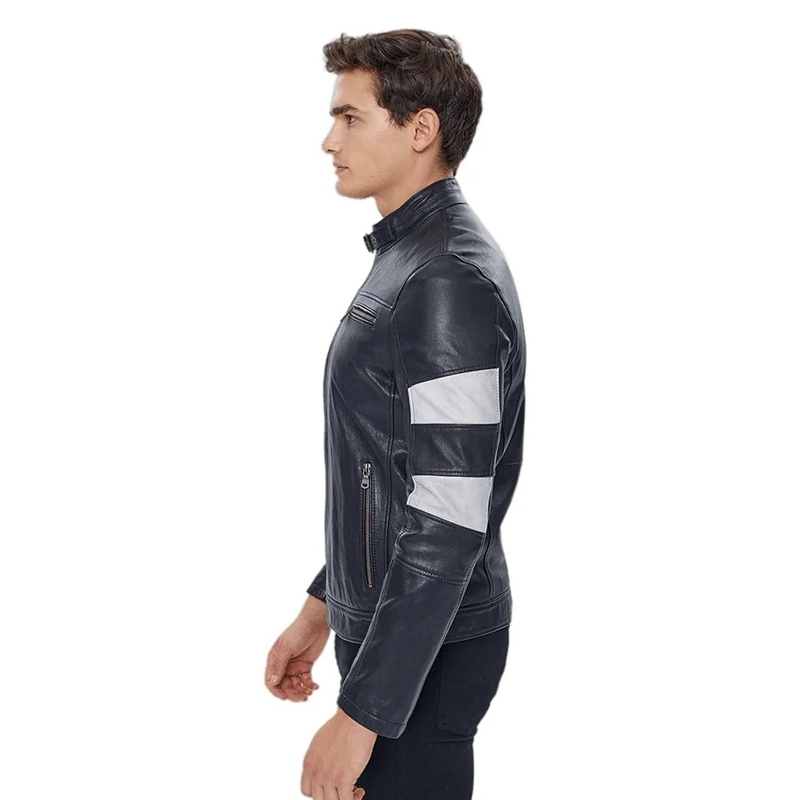 Crafted from premium-quality genuine leather, this jacket offers both durability and comfort. The belted collar and front zip closure give it a clean, tailored look, while quilted detailing on the shoulders and sleeves adds a rugged, protective appeal. With four convenient front pockets—two with secure zippers and two with snap closures—you’ll have room for essentials while on the go.