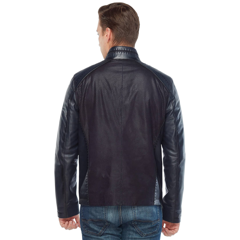 A bold fusion of vintage charm and modern craftsmanship, this jacket is made to impress. Featuring a distinctive pyramid laser design, the jacket combines the luxury of genuine lambskin leather with the sophistication of suede accents. Its minimalist yet impactful zipper pockets and structured stand-up collar bring a sharp, contemporary edge.
