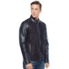 Men’s Black Leather Jacket with Pyramid Laser-Cut Design