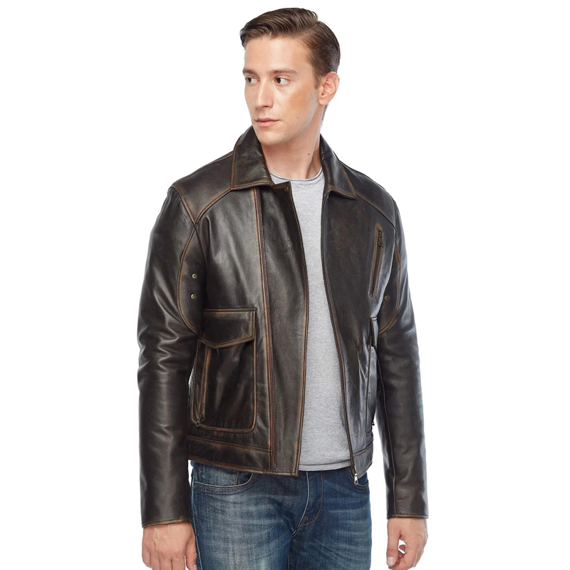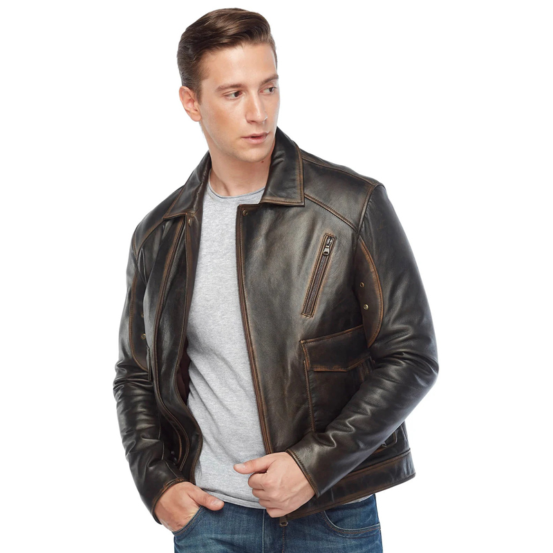 Turn heads wherever you go with this rugged yet refined distressed leather biker jacket. Crafted from 100% genuine lambskin leather, it blends timeless style with modern edge, featuring a rich brown base elevated by light brown highlights for a distinctive, lived-in look.
