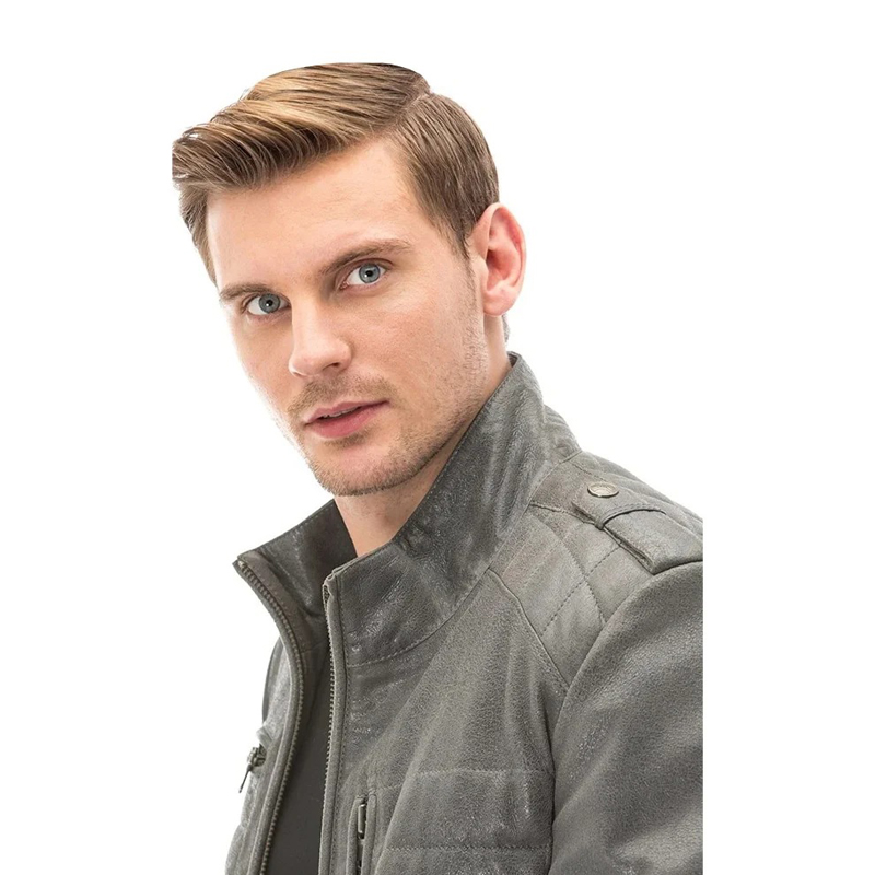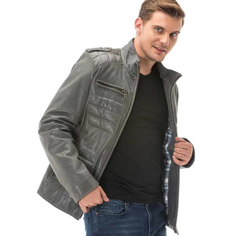 Men’s Real Grey Leather Ornamental Stitch Jacket