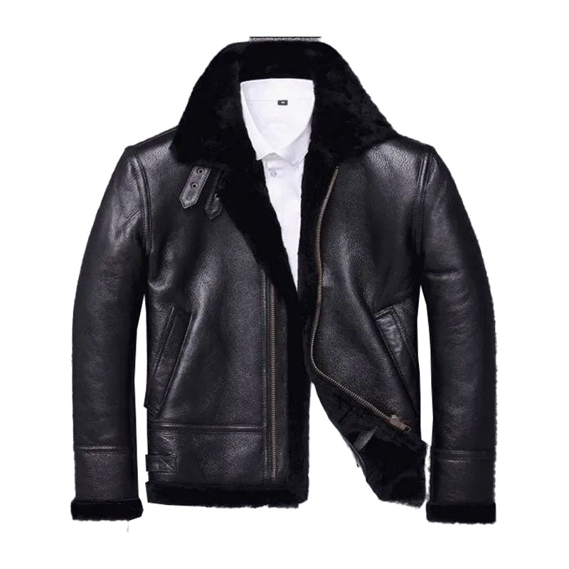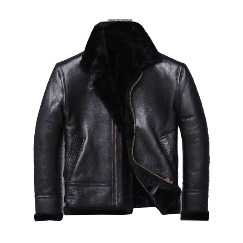 Men’s Slim Fit Shearling Sheepskin Winter Jacket – Thick Wool-Lined Fur Coat