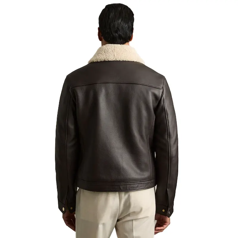 Reiss Dark Brown Shetland Shearling-Collar Leather Jacket
