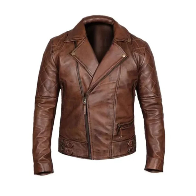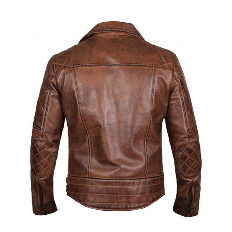 Men’s Vintage Quilted Brown Biker Leather Jacket