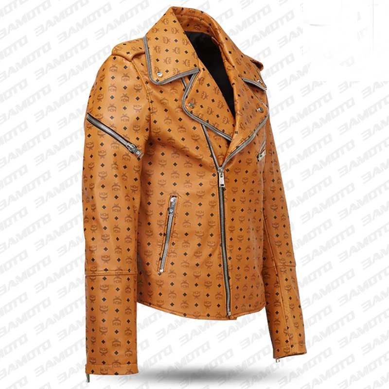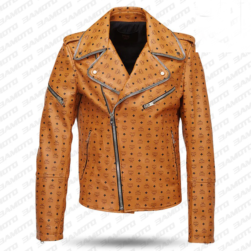Stand out in bold style with the Men’s Visetos Print Leather Rider Jacket. Crafted from premium leather and designed with MCM’s signature Visetos print, this jacket blends luxury with street-ready edge. The brown tone adds a classic touch, while the durable front zip closure and zippered side pockets bring practicality to the forefront. Its outer shell features a unique mix of polyamide and virgin wool, offering both structure and comfort. Inside, the soft polyester lining ensures a smooth fit for all-day wear. Whether you’re hitting the city or cruising on two wheels, this rider jacket delivers unmistakable attitude and craftsmanship.