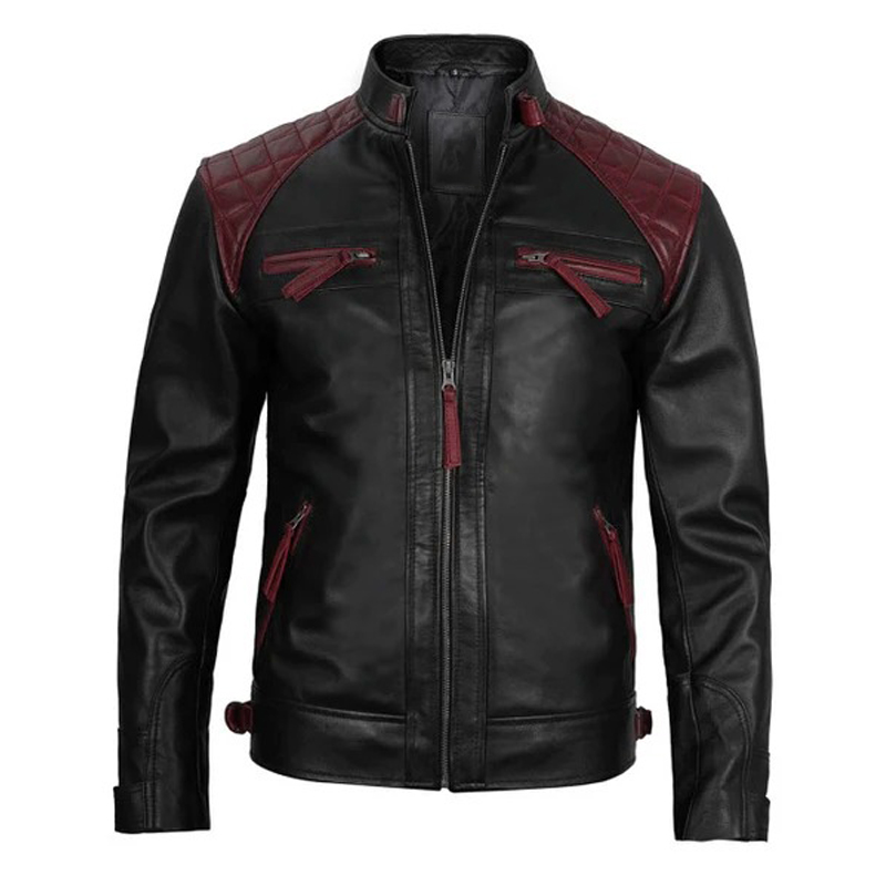 The quilted shoulders and snap-tab cuffs enhance its biker edge, while the band collar with buckle strap adds a modern twist. Designed for versatility, it features four exterior zippered pockets and two interior pockets to keep your essentials secure on the go.