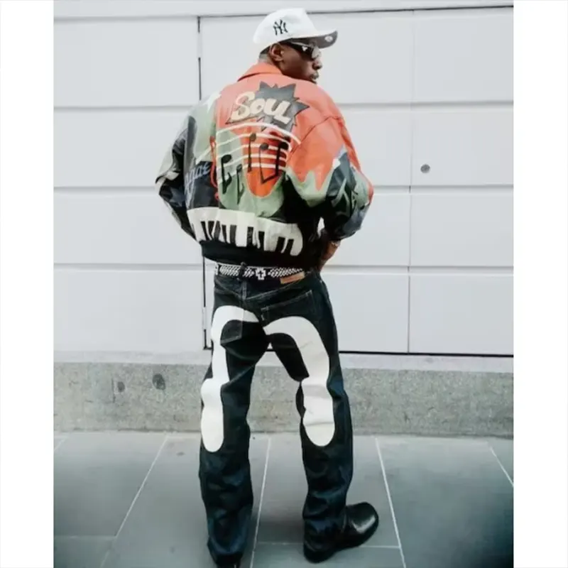 From the pioneers of urban fashion, this Pelle Pelle masterpiece stands out with its premium red leather construction, detailed stitching, and eye-catching musical influences. It’s not just outerwear – it’s wearable art.