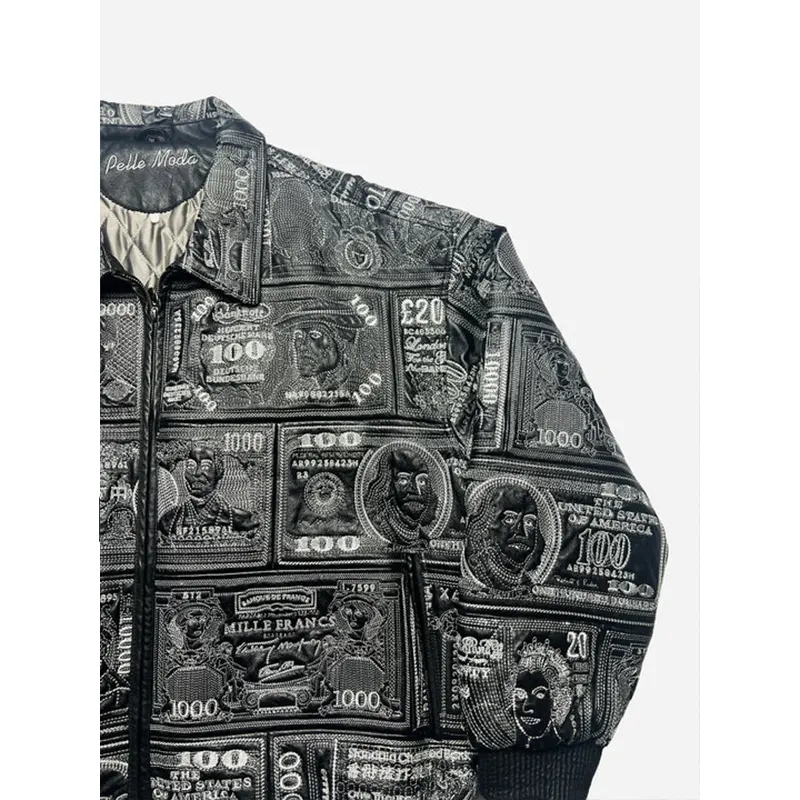 Step into the golden era of streetwear with this vintage Pelle Pelle World Currency Leather Jacket. A true gem from the 1990s, this rare piece features striking, high-detail embroidery showcasing global currency motifs—a tribute to international style and flair. Crafted from premium genuine leather, it delivers both durability and timeless street style.