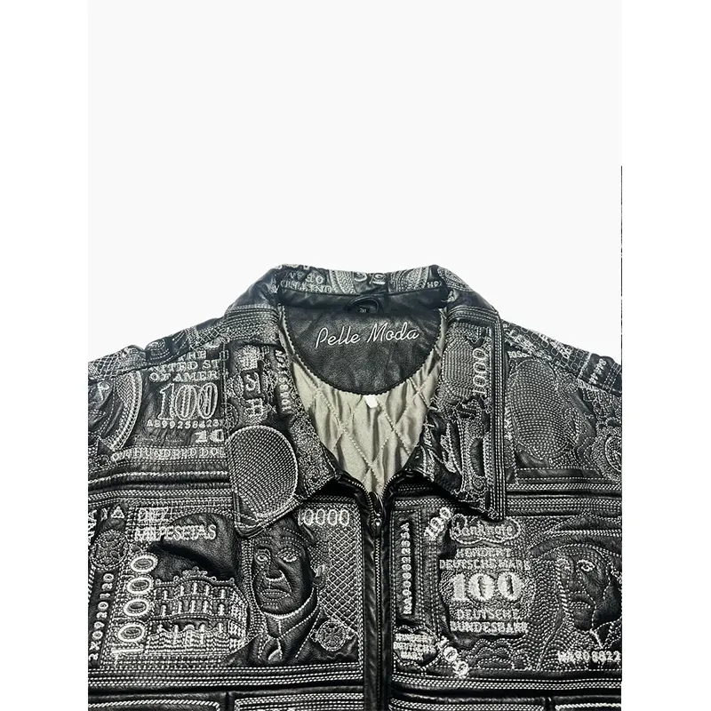 Vintage Pelle Pelle 90’s World Currency Embroidered Leather Jacket