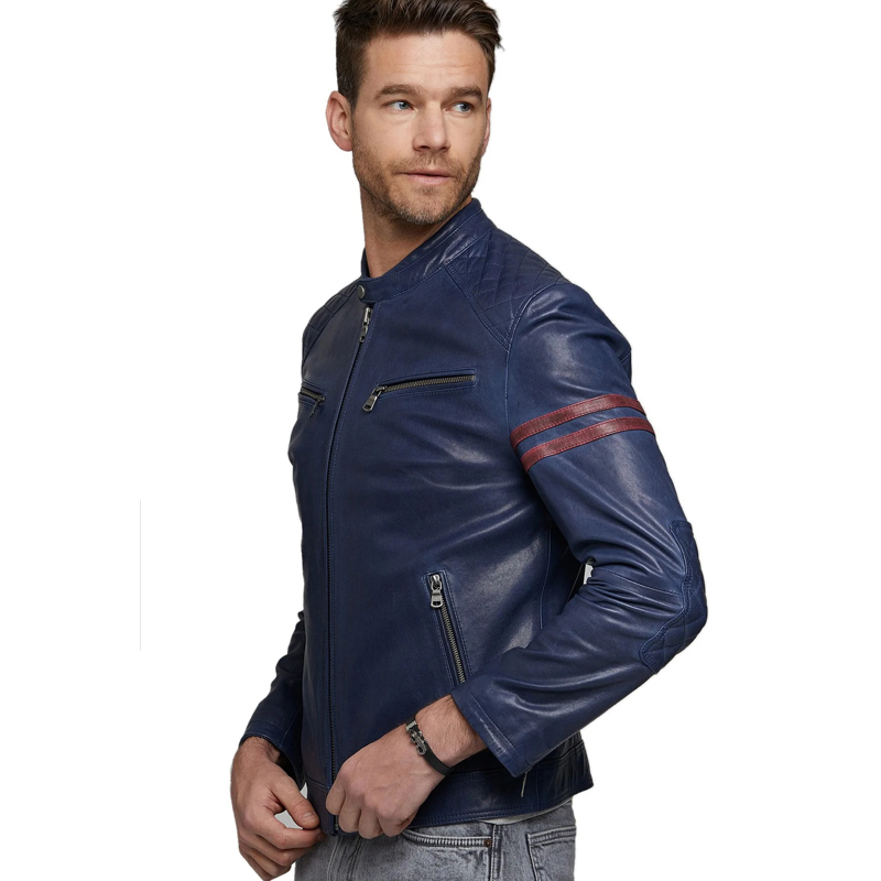 Men’s Blue Genuine Leather Biker Jacket – Revolution Style