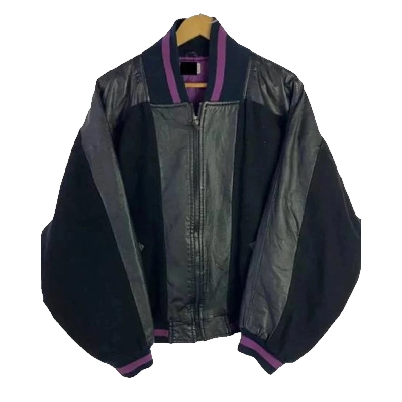 Power Book III Raising Kanan S04 Purple Trim Black Leather Bomber Jacket