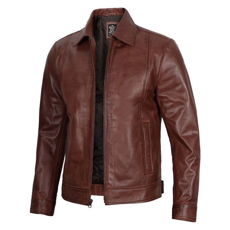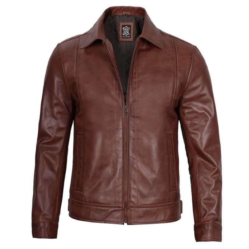 Reeves Men’s Cognac Brown Lambskin Harrington Leather Jacket