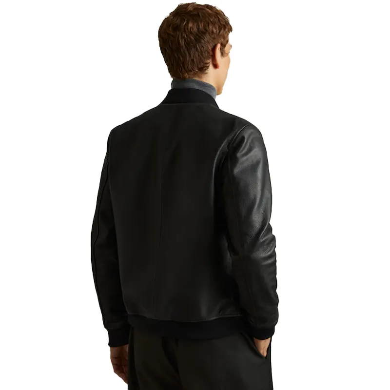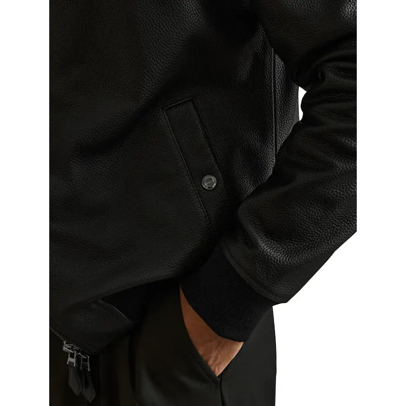 Reiss Black Cast Grained Leather Bomber Jacket For Men’s