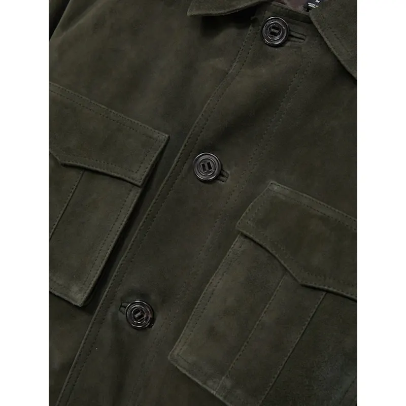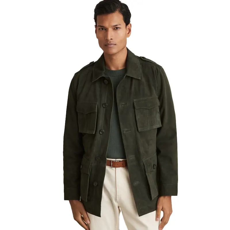Reiss Dark Forest Green Stafford Suede Four Pocket Field Jacket For Men’s