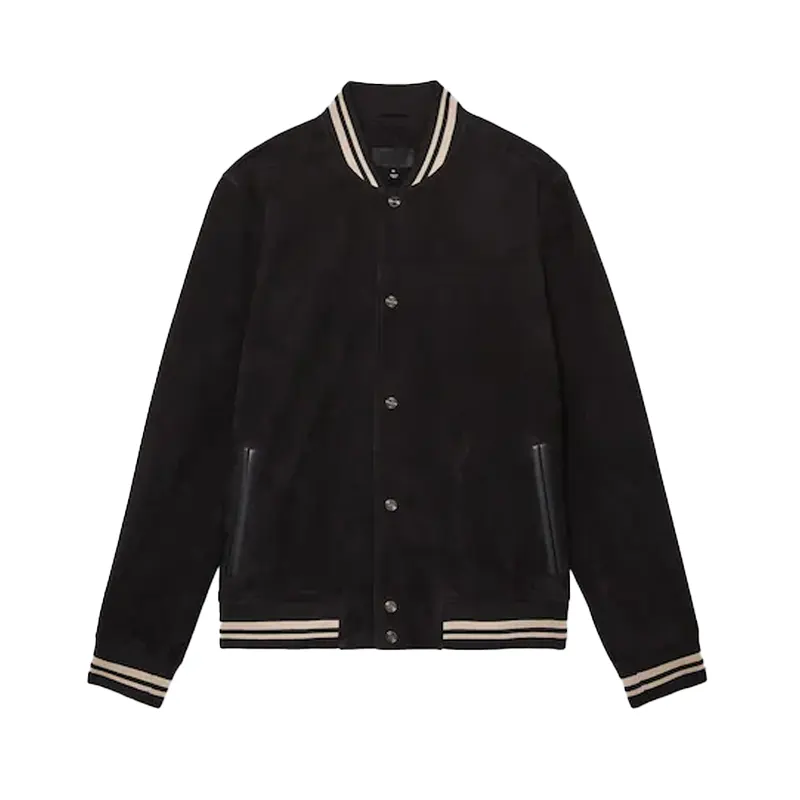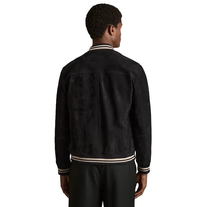 Reiss Navy Banridge Suede Stripe-Trim Bomber Jacket