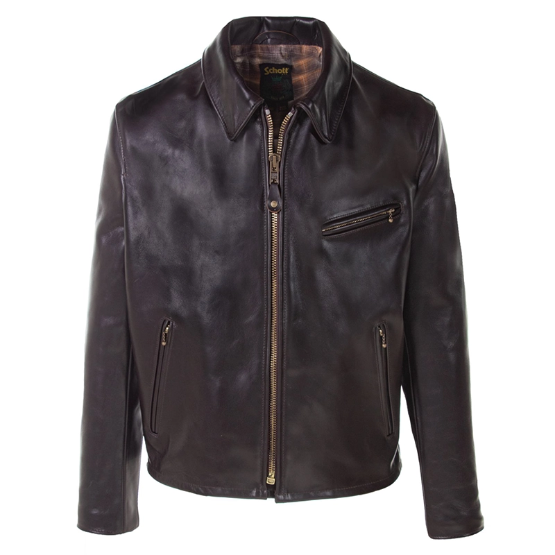 The Schott Cowhide Racer Motorcycle Jacket delivers streamlined moto style with rugged performance. Crafted from heavyweight cowhide for protection, durability, and a bold look. A minimalist design built for the road and refined for everyday wear.