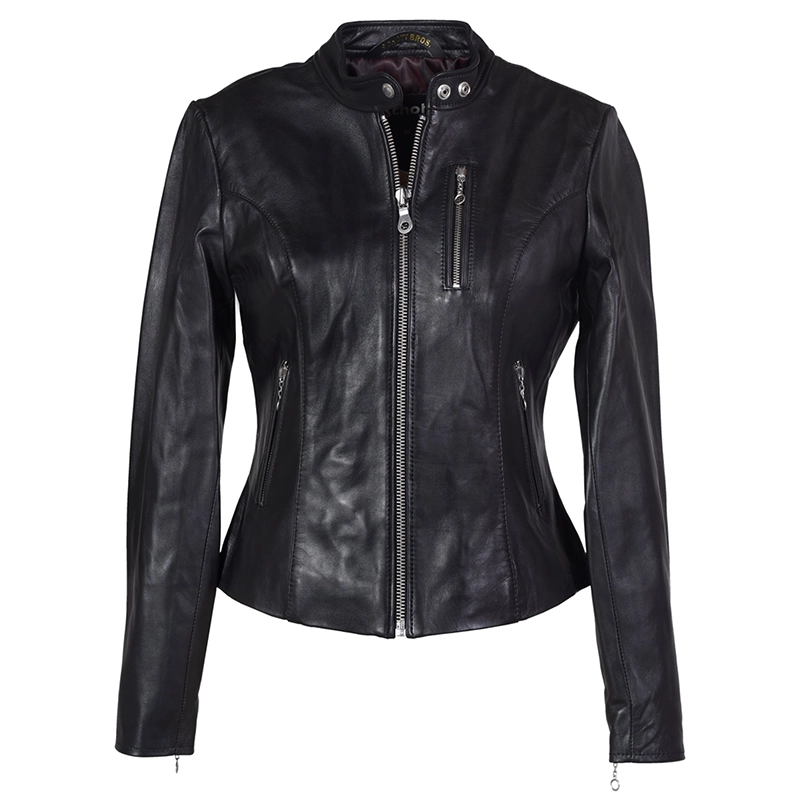 The Schott Lambskin Café Leather Jacket blends sleek design with luxurious comfort. Crafted from ultra-soft lambskin leather for a lightweight, refined feel. A modern café racer silhouette perfect for both casual and elevated looks.