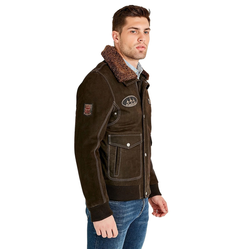 Men’s Real Brown Leather Air Force Jacket with Fur Collar – Sean O’Pry Edition