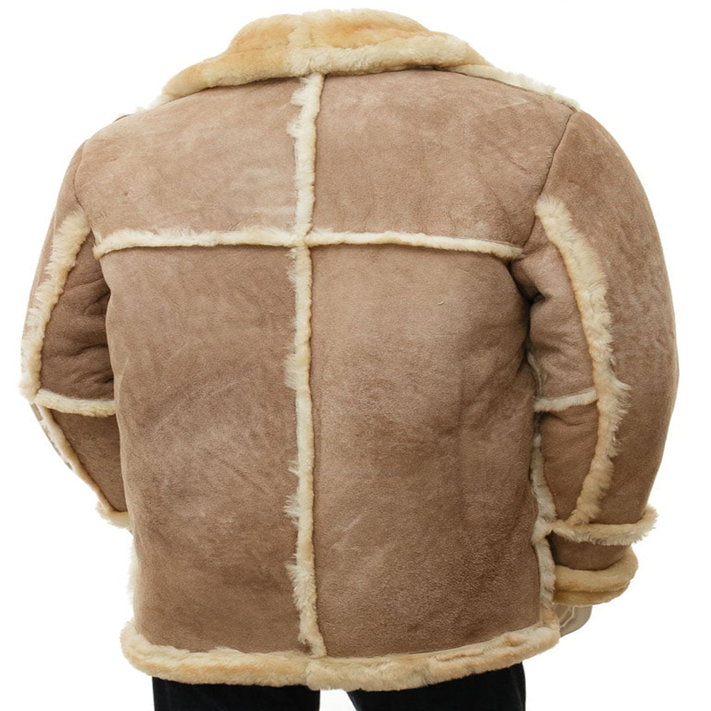 Mens Sand Brown Sheepskin Leather Fur Coat