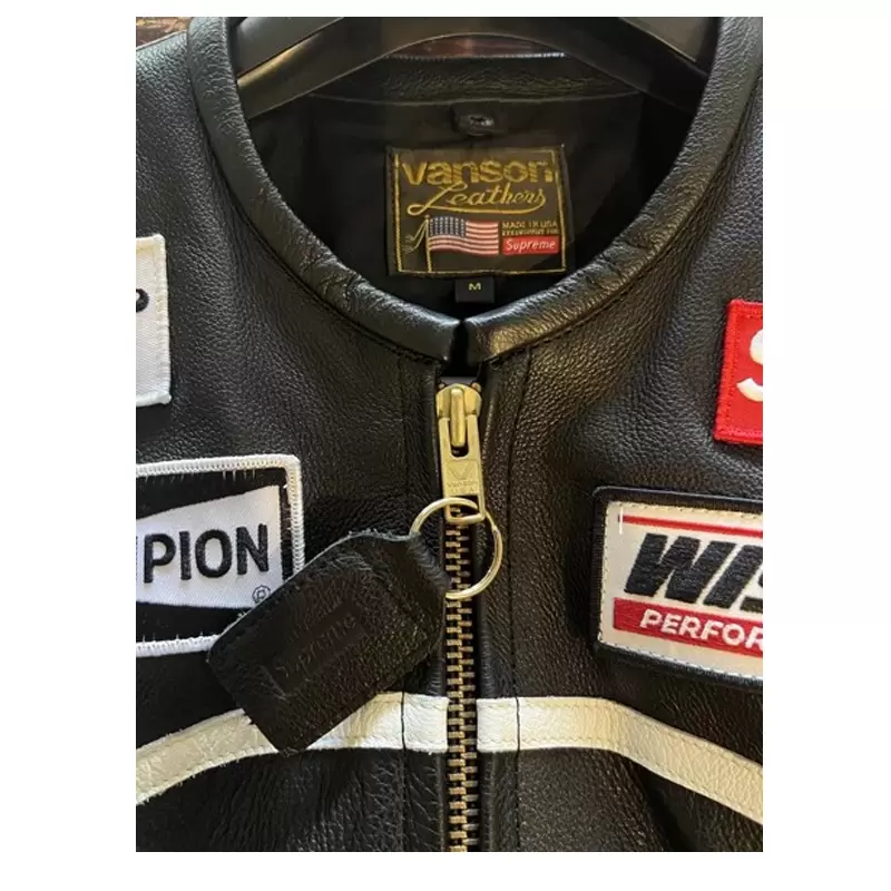 The Supreme Vanson Leather Star Jacket in black is a standout piece with its bold design. Crafted from premium leather, it offers both durability and style. The star accents provide a unique, eye-catching touch. Ideal for fashion-forward individuals looking to elevate their jacket collection.