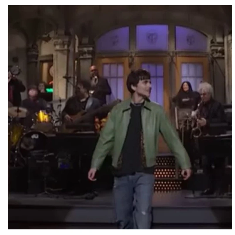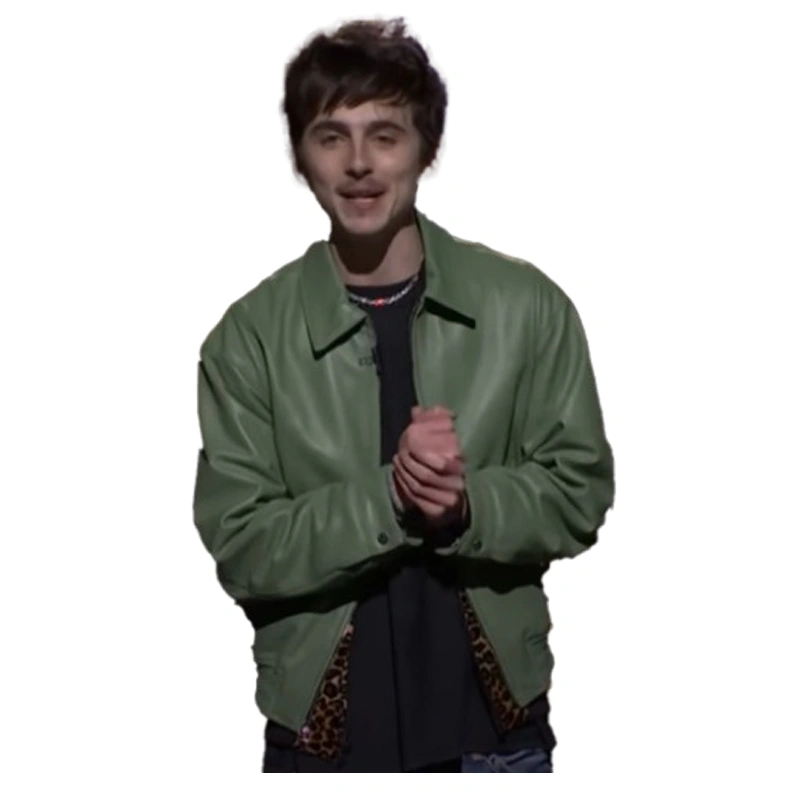 SNL 2025 Timothée Chalamet Trucker Leather Jacket – in Green