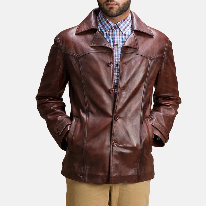 Elevate your outerwear game with the Vincent Alley Men’s Brown Leather Jacket—a timeless blend of rugged sophistication and everyday comfort. Crafted from 100% genuine sheepskin leather, this jacket offers a supple feel and durable build that gets better with age. The soft viscose lining ensures all-day comfort, while the classic button-front closure and notch lapel collar deliver vintage-inspired charm. With a smart balance of functionality and style, featuring two inner and two outer pockets, this versatile brown jacket is your go-to piece for casual outings, cool-weather layering, or simply making a statement.